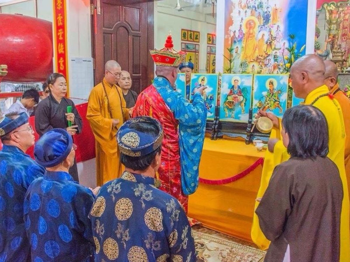 The incense offering ceremony to commemorate ancestors is meticulously prepared with elaborate vegetarian offerings and gifts, demonstrating the community's sincerity. People light incense together, sending wishes for peace, prosperous harvests, and hope for divine protection for a harmonious year.