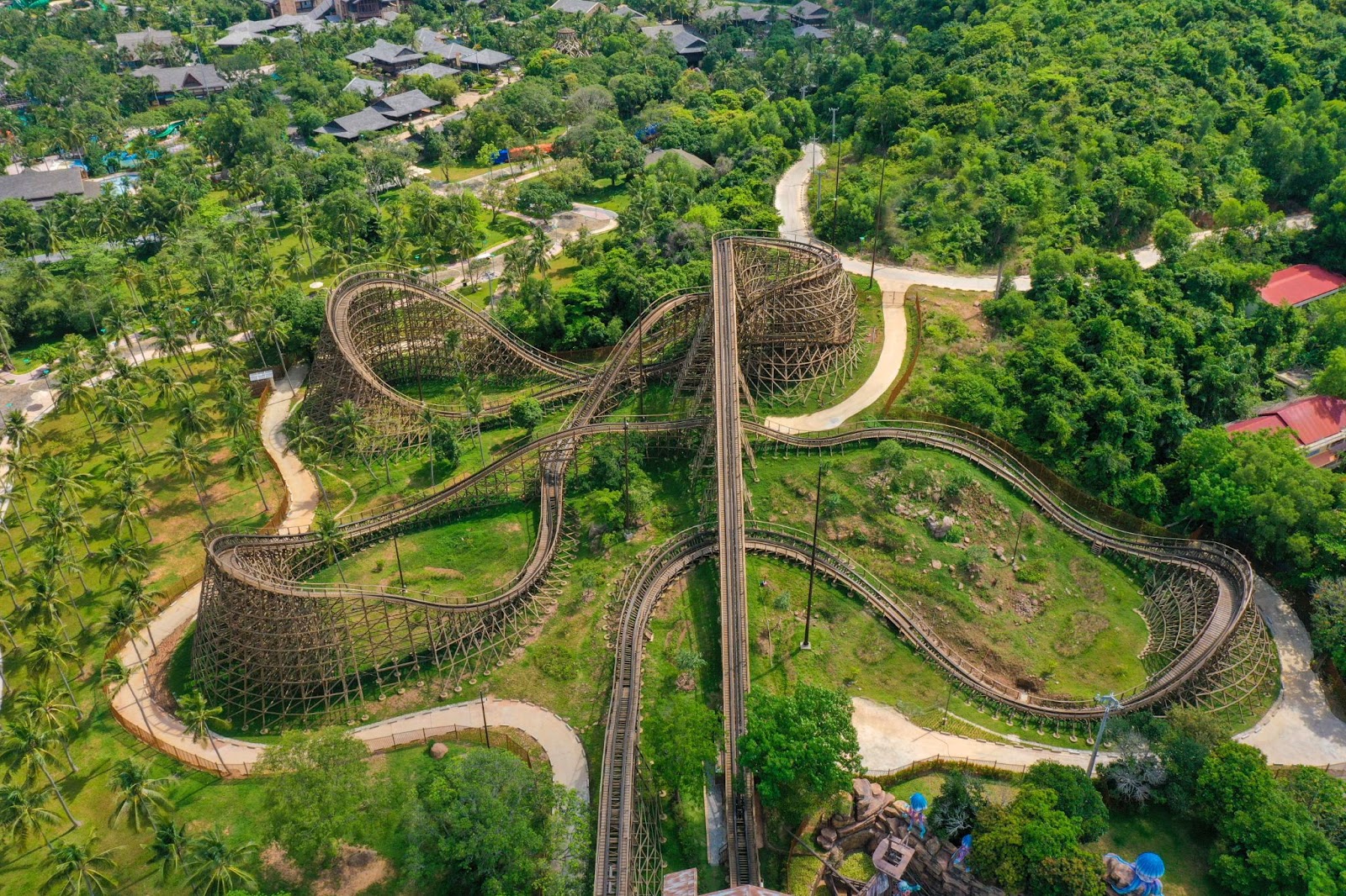 The main draw at Sun World Hon Thom is the “Angry Wooden Snake” - Vietnam’s premier wooden roller coaster. This magnificent marvel offers a full sensory thrill, starting with the classic click-clack of the lift hill. The coaster feels truly alive, rumbling and roaring as it speeds up to 80 km/h through 900 meters of twists, drops, and turns. However, its incredible setting is what truly elevates this ride to a world-class level.