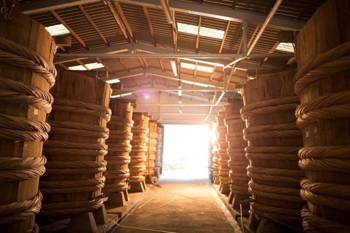 During a visit, guests can witness firsthand the fermentation process in massive wooden barrels reaching up to 4 meters high, made from bời lời wood – a special type found only in certain parts of southern Vietnam. Each barrel can hold 12 to 13 tons of anchovies and sea salt, fermented continuously for 12 to 15 months to produce the rich, flavorful fish sauce concentrate.