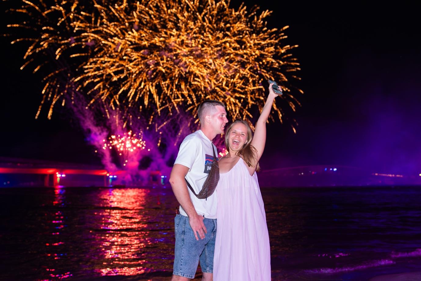 Ms. Anna Ivanova, a Russian tourist, emotional with her family: "It's truly overwhelming and happy! I've never experienced a New Year's celebration as beautiful and brilliant as tonight in Phu Quoc. The fireworks, the sea, the music, everything is perfect. I feel an amazing energy and believe this new year will be full of joy."