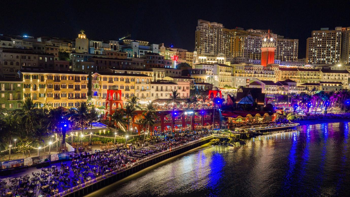 Next, a high-altitude artistic fireworks display from the 'Kiss of the Sea' show once again lit up the sky, with tens of thousands of visitors from the show's grandstand, beer restaurants, Sunset Beach Club, and the town's streets erupting in emotion. Many described this place as a destination for fireworks lighting up the rooftops every night.