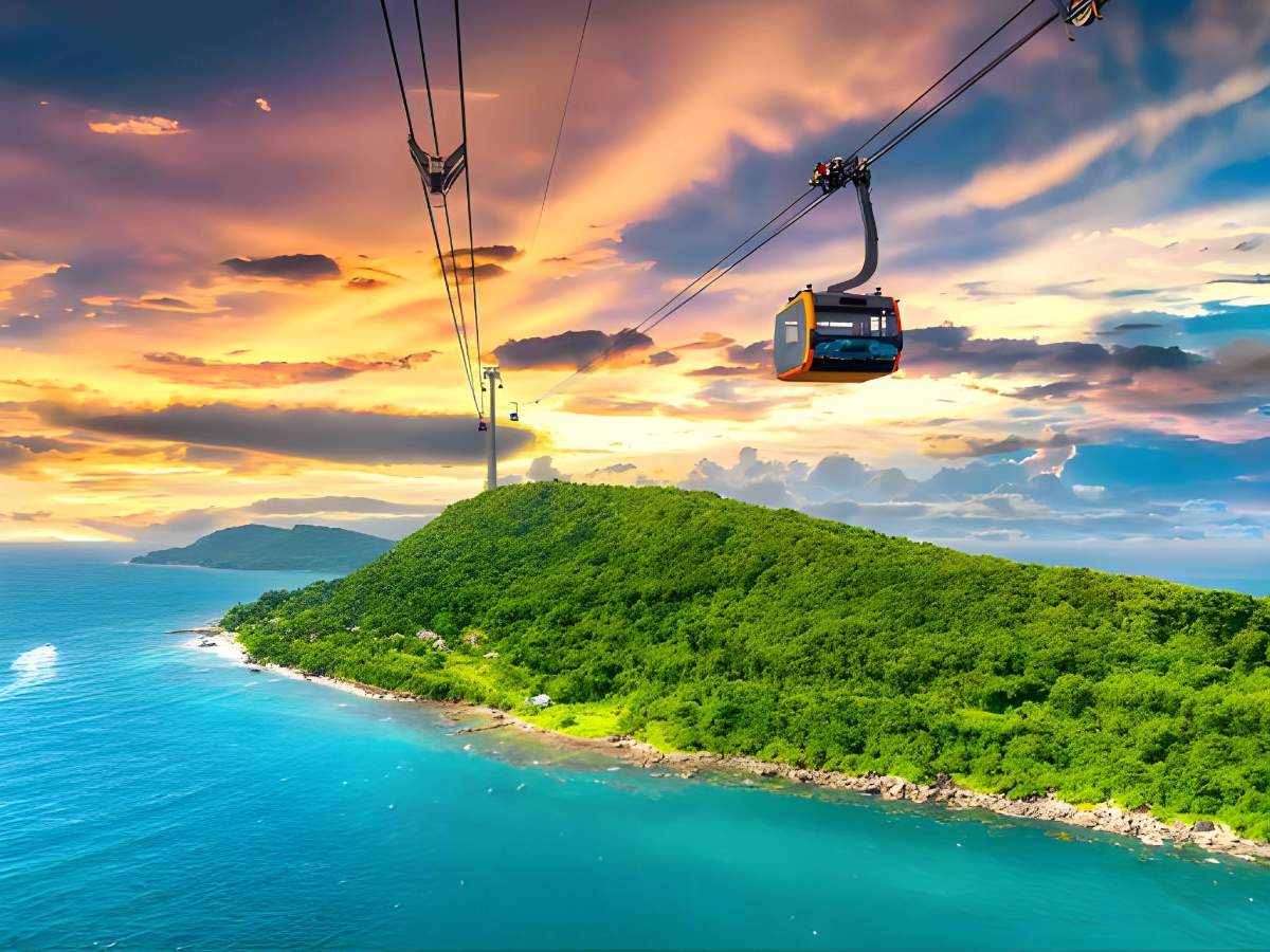 Sun World Hon Thom nổi bật vì có tuyến cáp treo vượt biển dài nhất thế giới. (Nguồn: Sưu tầm)