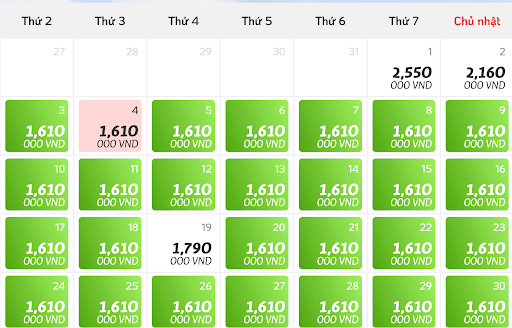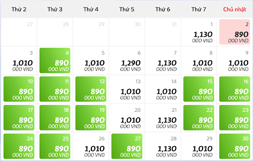 Giá vé phụ thuộc nhiều vào thời gian bay. Các chuyến sáng sớm hoặc tối muộn thường có giá thấp hơn. Nếu không gấp gáp, bạn nên linh hoạt chọn ngày đi – về cách ngày lễ hoặc cuối tuần để có giá tốt hơn.