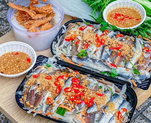 Nếu có món ăn nào vừa dân dã vừa tinh tế, đủ để “định danh” cho ẩm thực đảo ngọc, thì đó chính là gỏi cá trích. Cá trích tươi được làm sạch, thái mỏng, trộn cùng hành tây, dừa nạo, rau thơm và nước cốt chanh, giữ nguyên độ ngọt tự nhiên mà không hề tanh. Món này ăn kèm bánh tráng, rau sống, chấm nước mắm tỏi ớt pha chua ngọt, thêm đậu phộng rang giã dập là đúng chuẩn Phú Quốc. Mỗi miếng gỏi là sự hòa quyện của vị giòn, béo, chua cay đầy kích thích.